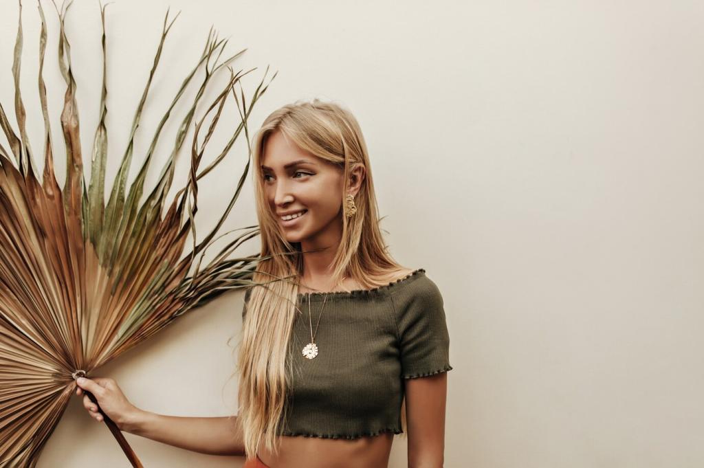 Pflanzengefärbte Garne, handgezogene Knopfleisten und vegetabil gegerbtes Leder ermöglichen Silhouetten, die Maschinen selten erreichen. Die echte Hand schützt vor Gleichförmigkeit und eröffnet ästhetische Wege, die überraschend zeitgemäß wirken.
